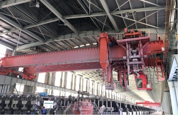電解鋁多功能起重機(jī)是大型預(yù)焙陽極電解鋁生產(chǎn)的關(guān)鍵工藝設(shè)備,能適應(yīng)高溫、大電流、強(qiáng)磁場、多粉塵及HF煙氣的特殊環(huán)境,它能完成預(yù)焙陽級電解槽的下列工藝操作: